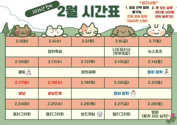 - [모집] 2026년 1~2월 청소년방과후아카데미 '청비' 모집
